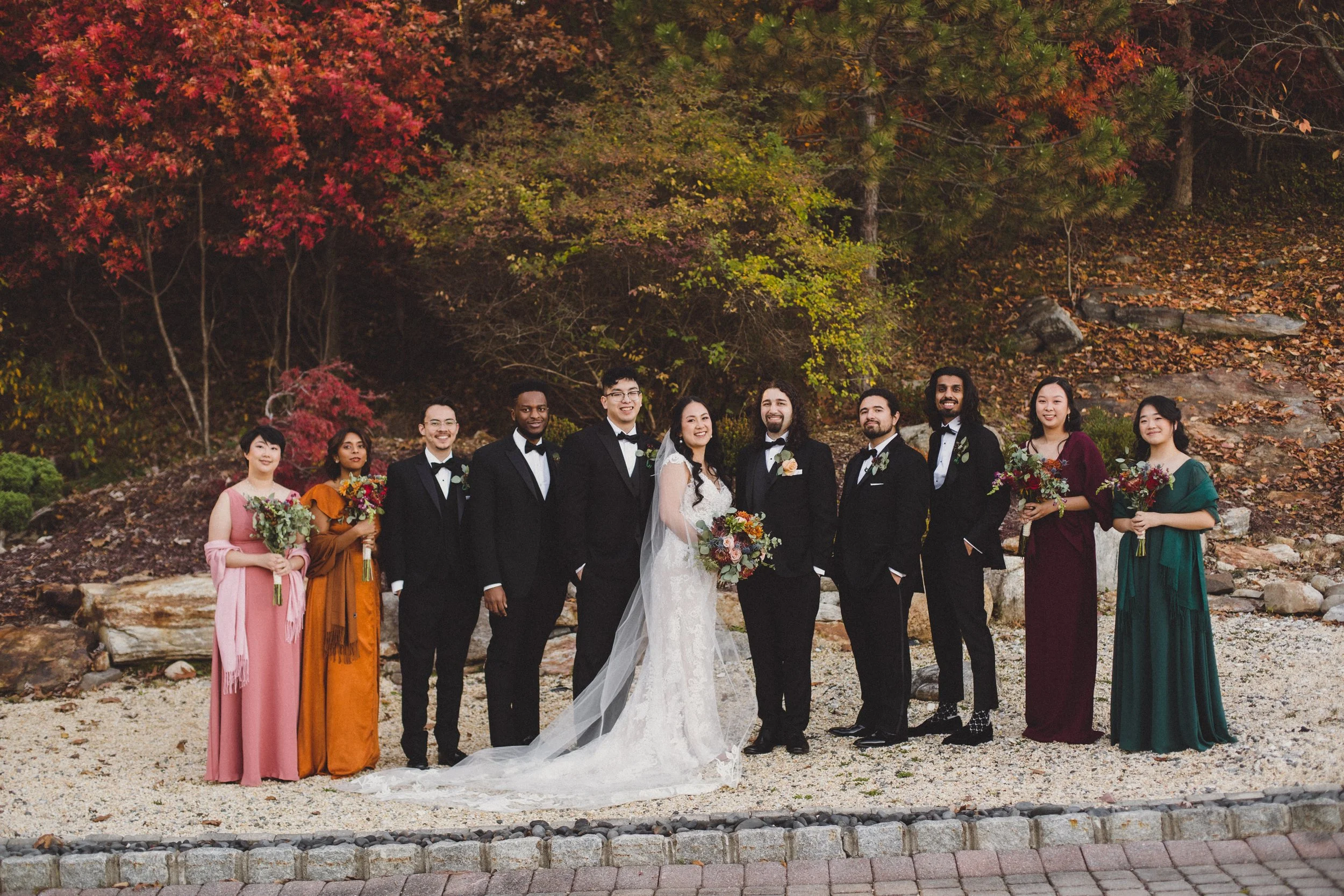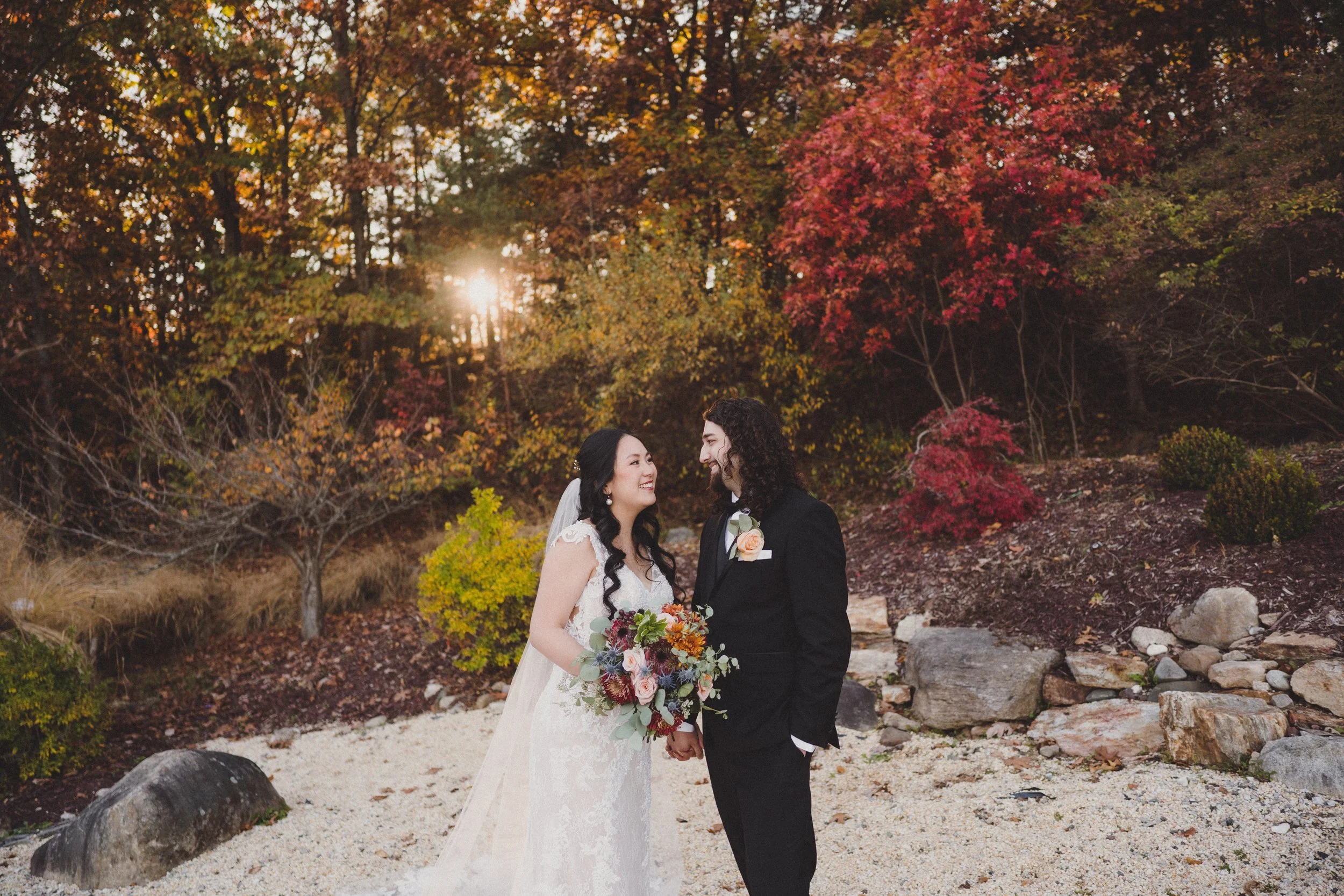 The venue offers a sweeping, 360-degree view of the Ramapo Valley. During peak autumn, the valley transforms into a sea of burnt oranges, deep reds, and golden yellows. For a photographer, this is a dream. Whether we are shooting your ceremony at the outdoor gazebo or taking portraits along the stone walkways, the natural color palette adds an editorial richness to every frame.