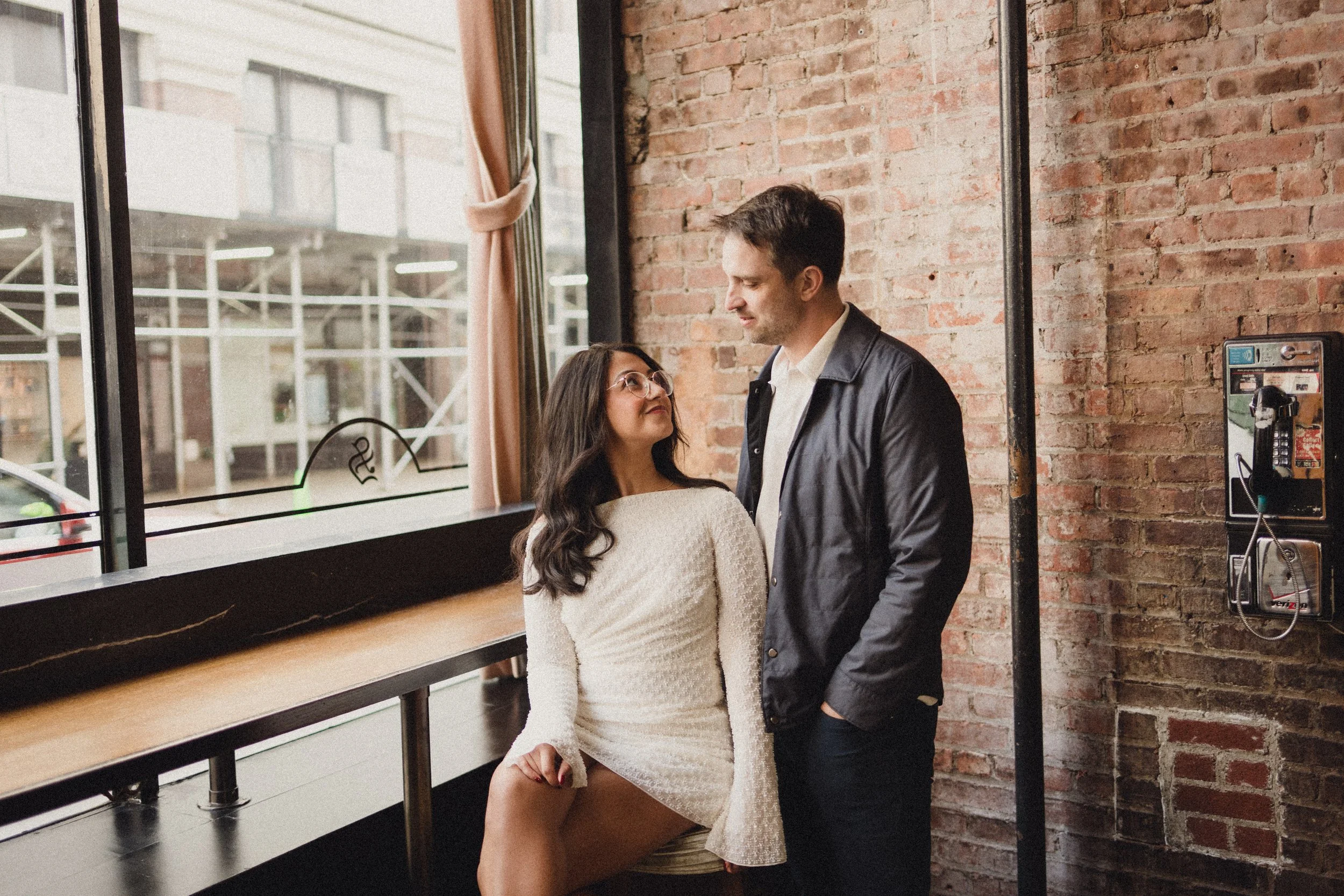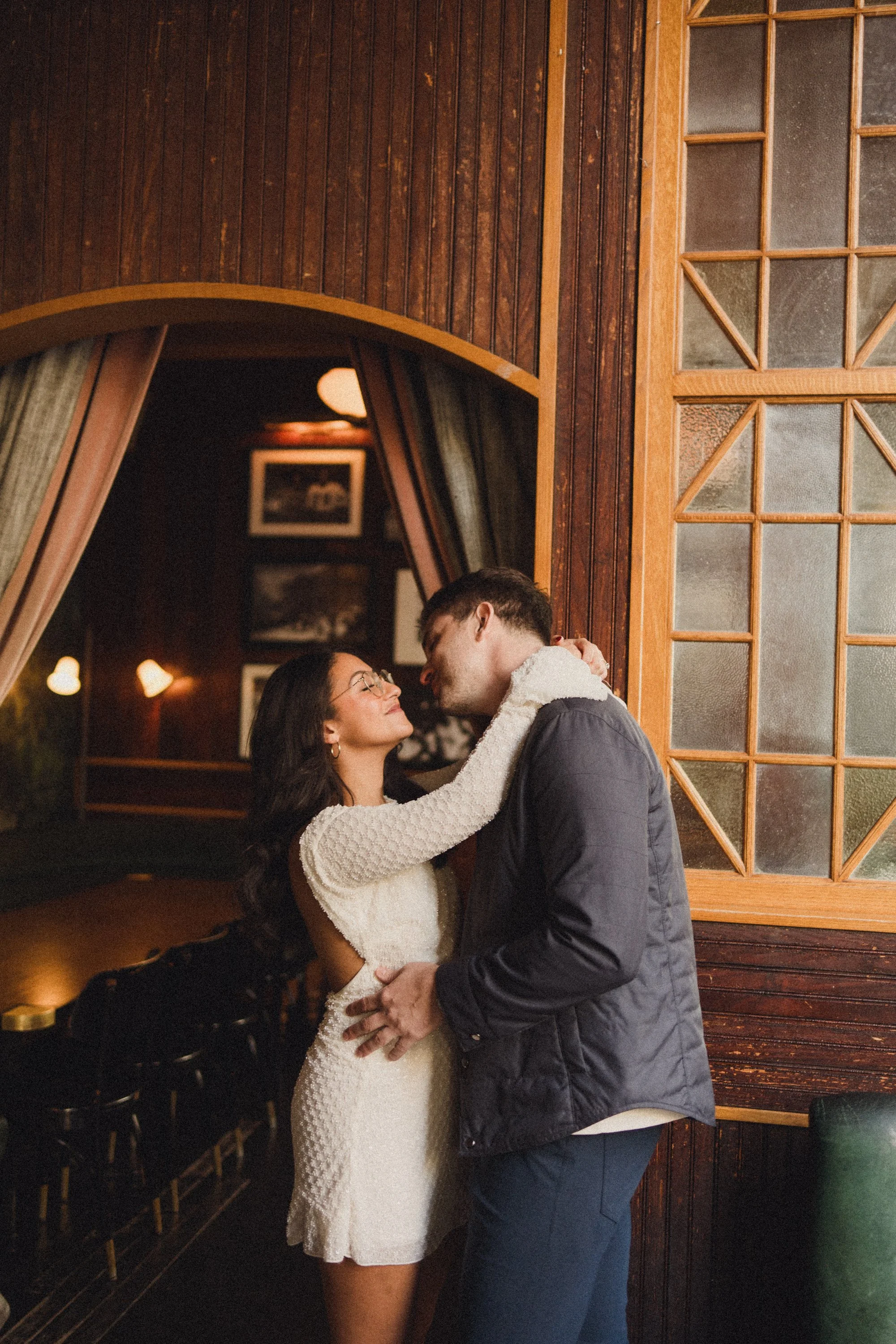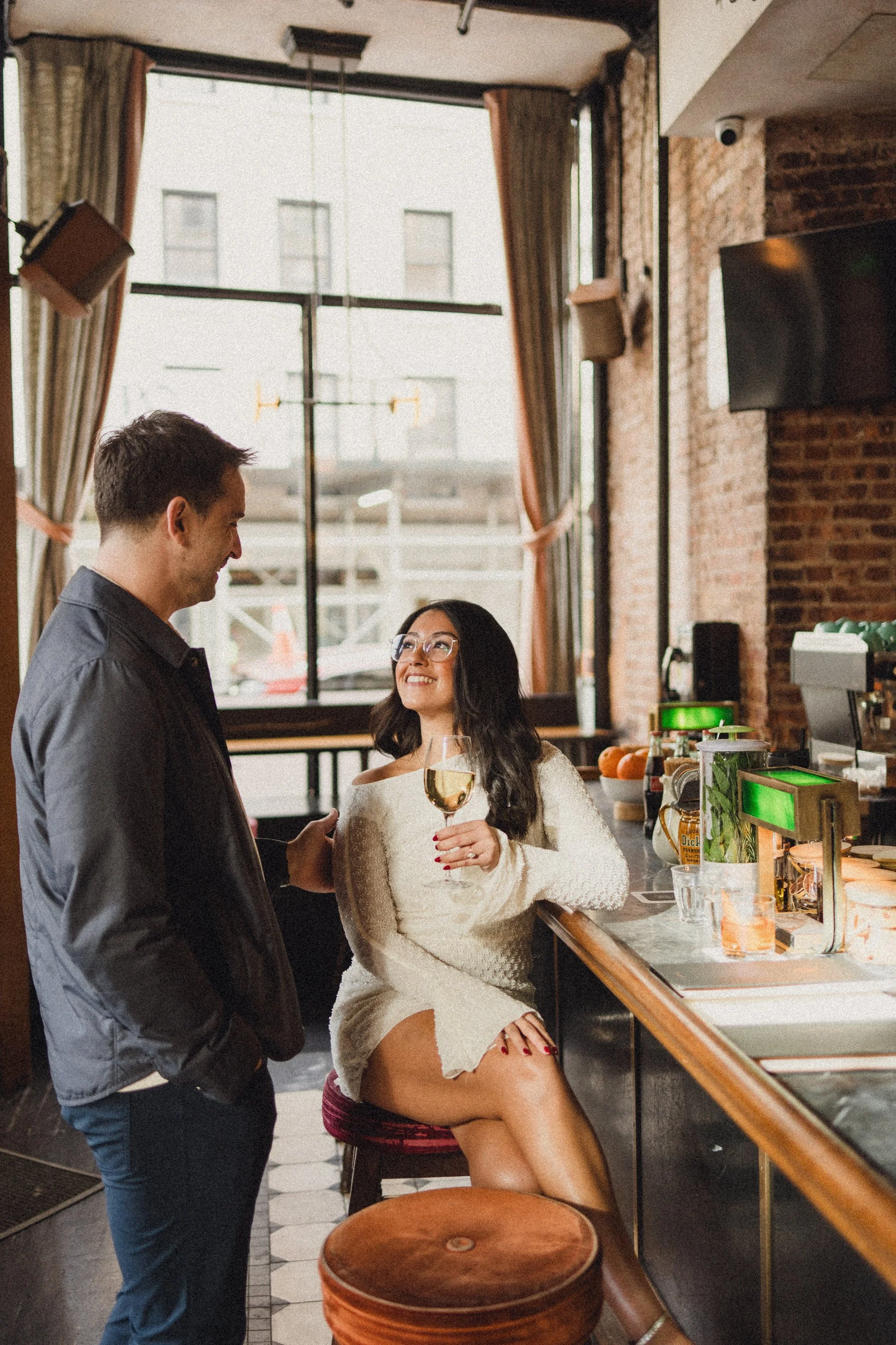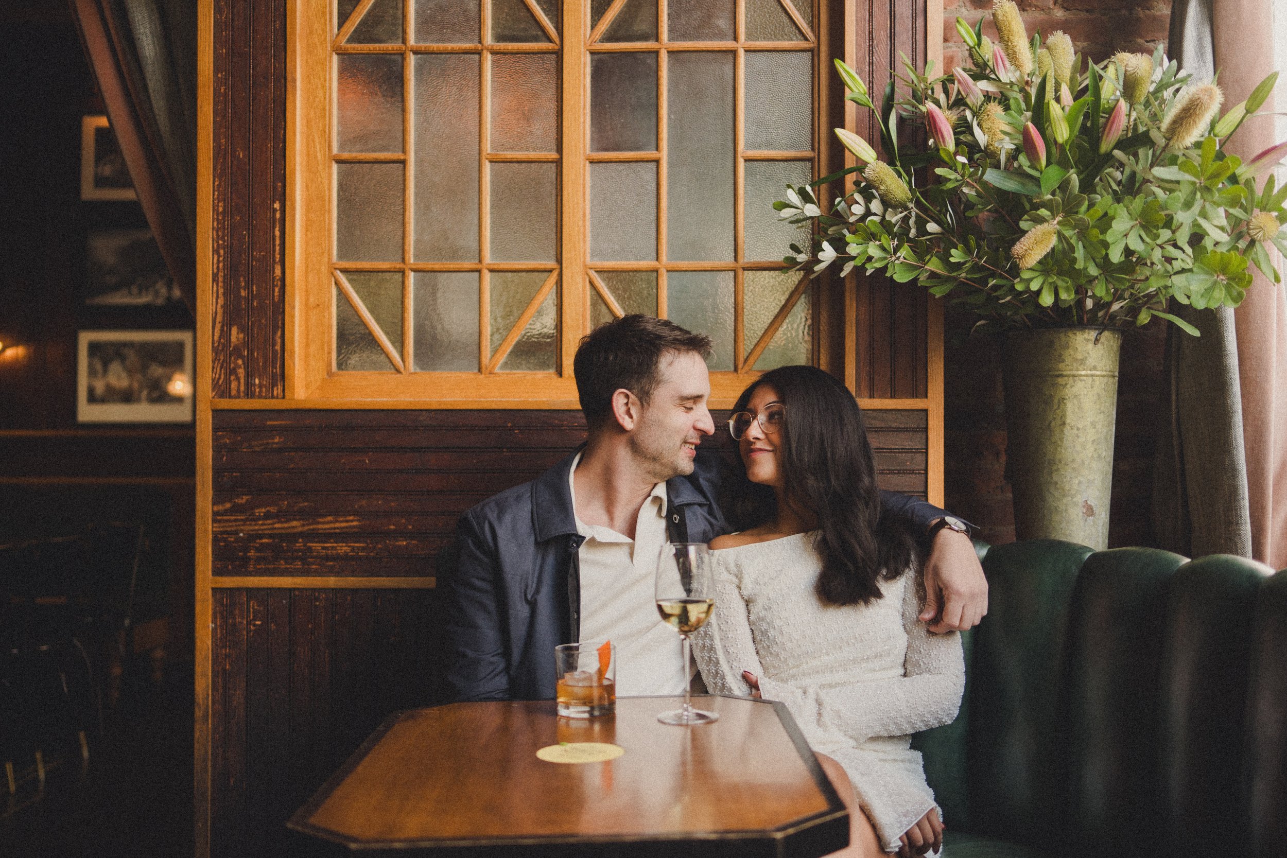 We wrapped the day at a local Art Deco-inspired bar. Think dark wood, brass accents, and amber lighting. There is nothing more romantic than sharing a cocktail at a corner booth while the blue hour sets in outside.